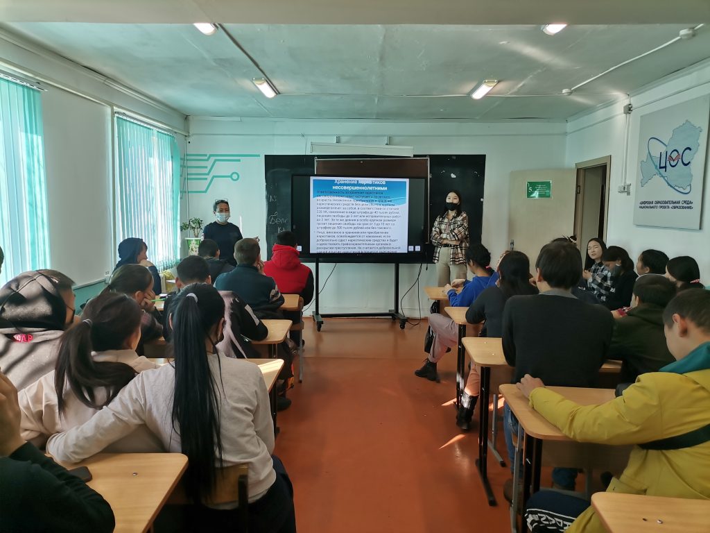 09 ноября 2021г в ГБПОУ РТ ТТА в целях профилактики правонарушений среди несовершеннолетних студентов и в рамках взаимодействия между субъектами по профилактике правонарушений была проведена встреча с инспектором ПДН Намчан-оол Л.В и ответственным секретарём КДНиЗП Монгуш С.А. на тему «Уголовная и административная ответственность несовершеннолетних за хранение, употребление и сбыт наркотических веществ». Охват 60 человек