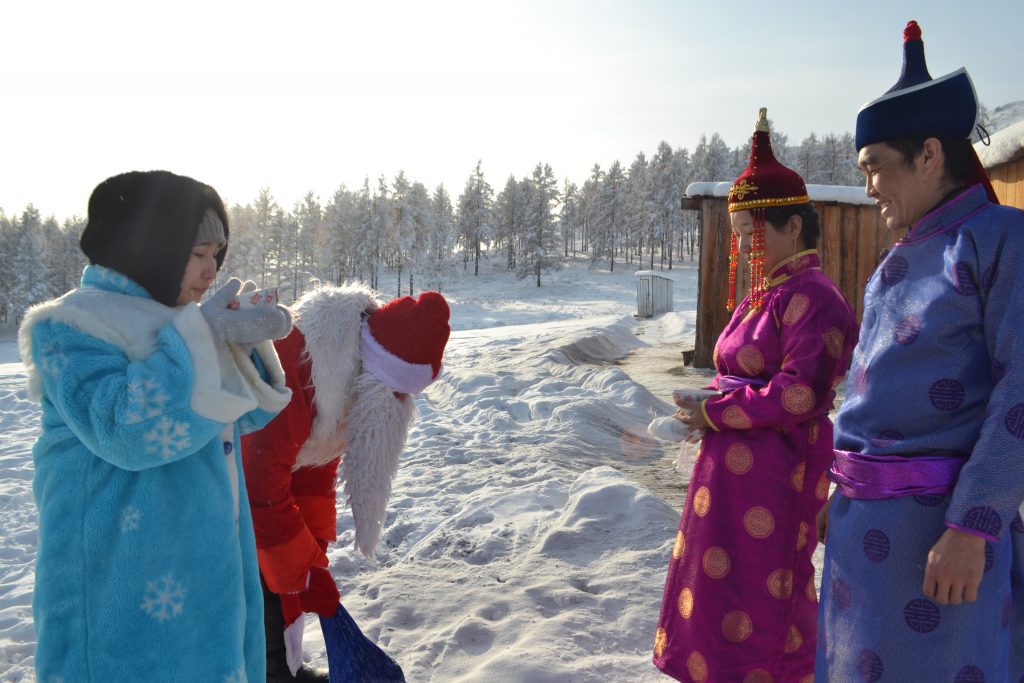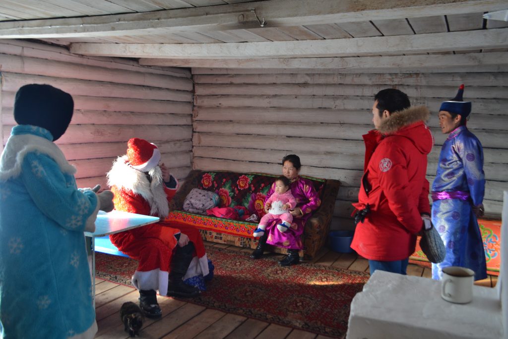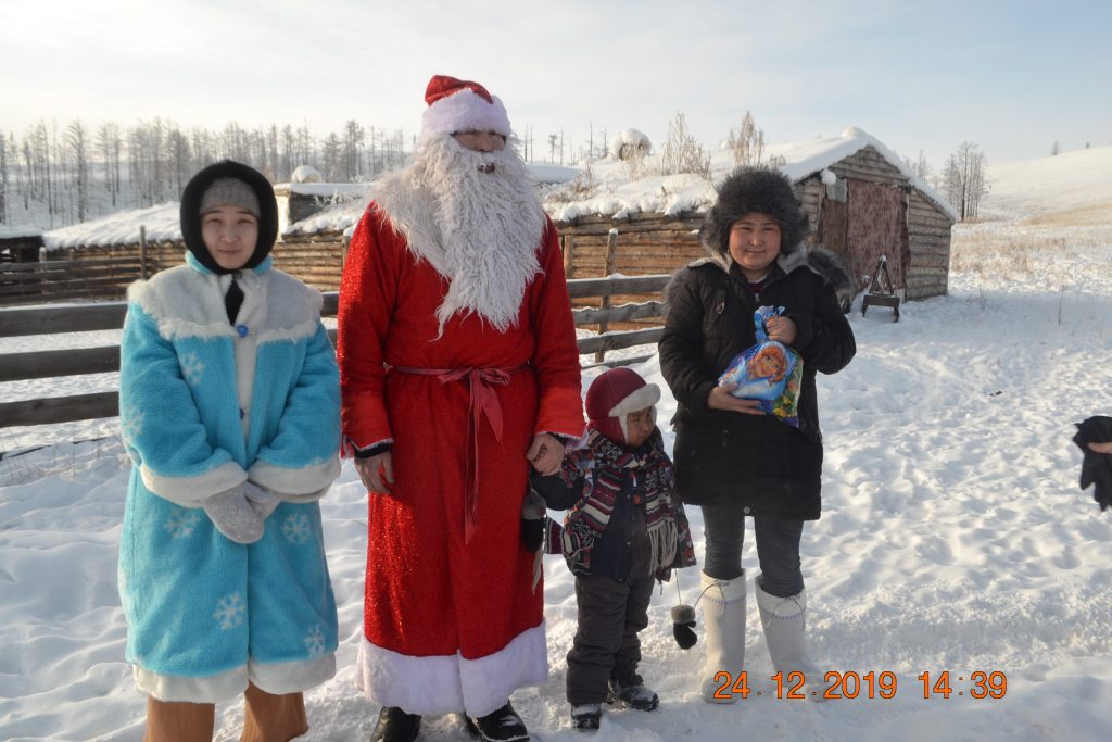 24 декабря от лица коллектива техникума педагоги поздравили с Новым годом детей участников государственной программы «Кыштаг-для молодой семьи». Кроме сладких подарков старшим в семье переданы по 2 мешка овса для каждой чабанской стоянки. Посетили семью Тулуш Федосьи Анатольевны и Тулуш Ай-Мерген Эрес-ооловича, стоянка находится на м. Кадыр-Орук. Имеют 2 детей. А также семью выпускников нашего техникума, участников проекта Саая Сай-Даш Сергеевича и Саая Ай-Суу Антоновну, семья имеет 3 детей. Их стоянка находится в м.Мойналык Каа-Хемского района. Семья Саая победители кожуунного Наадыма-2019.