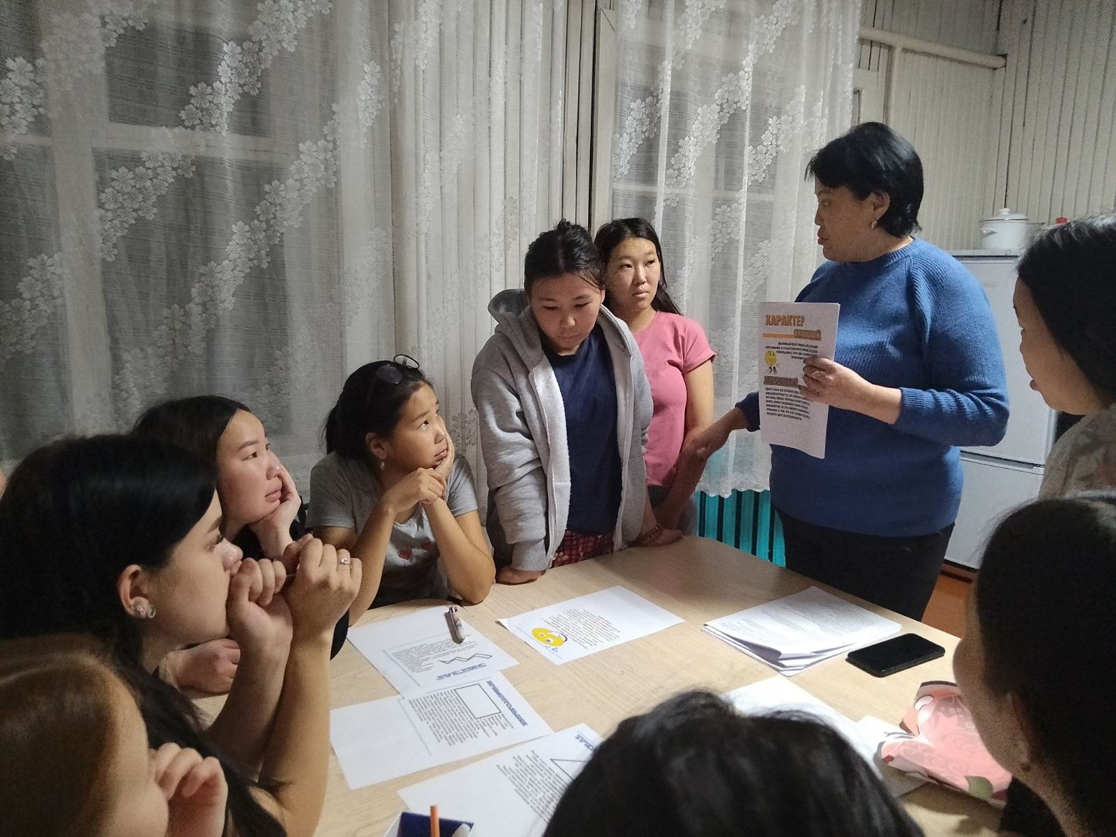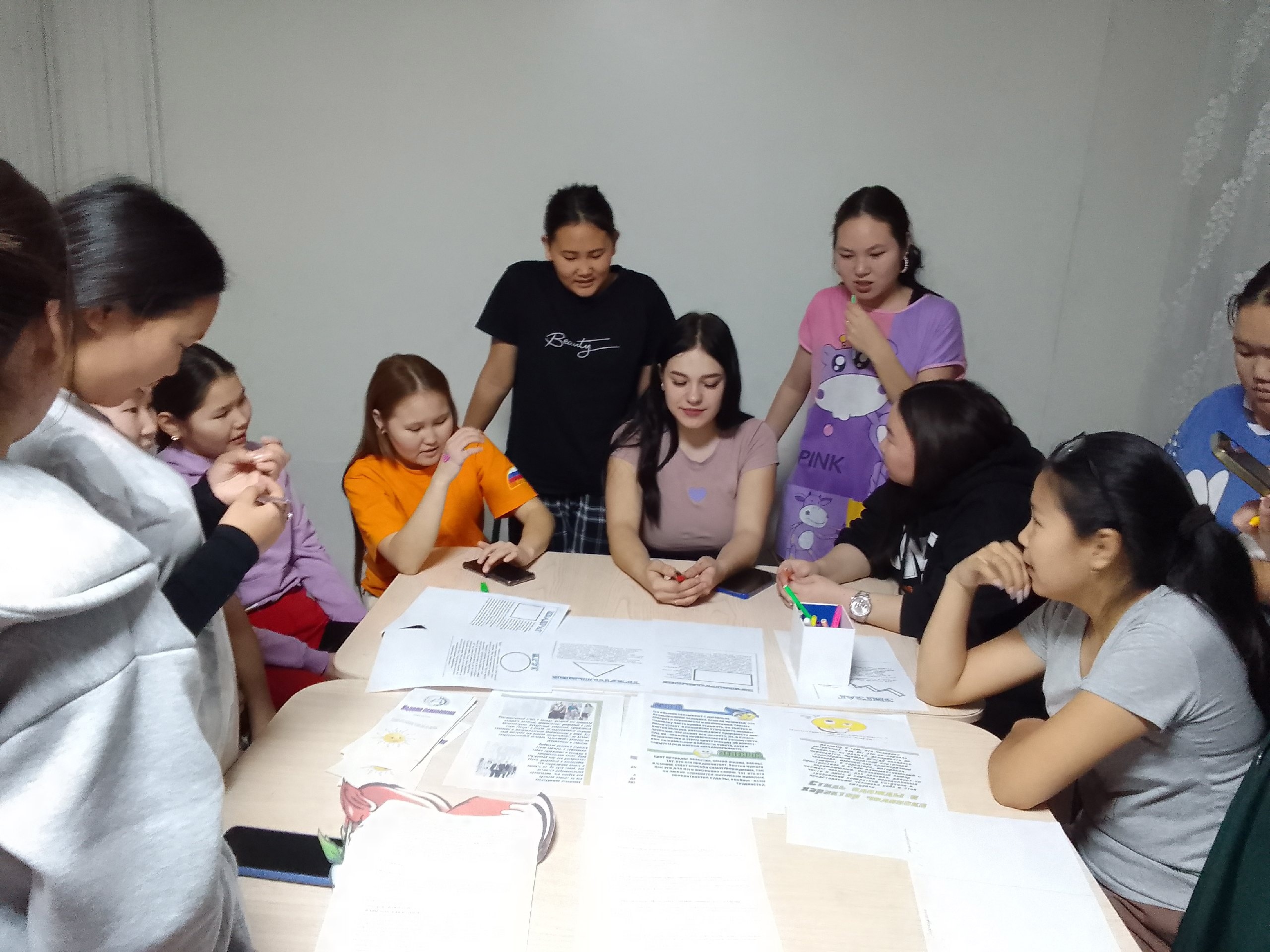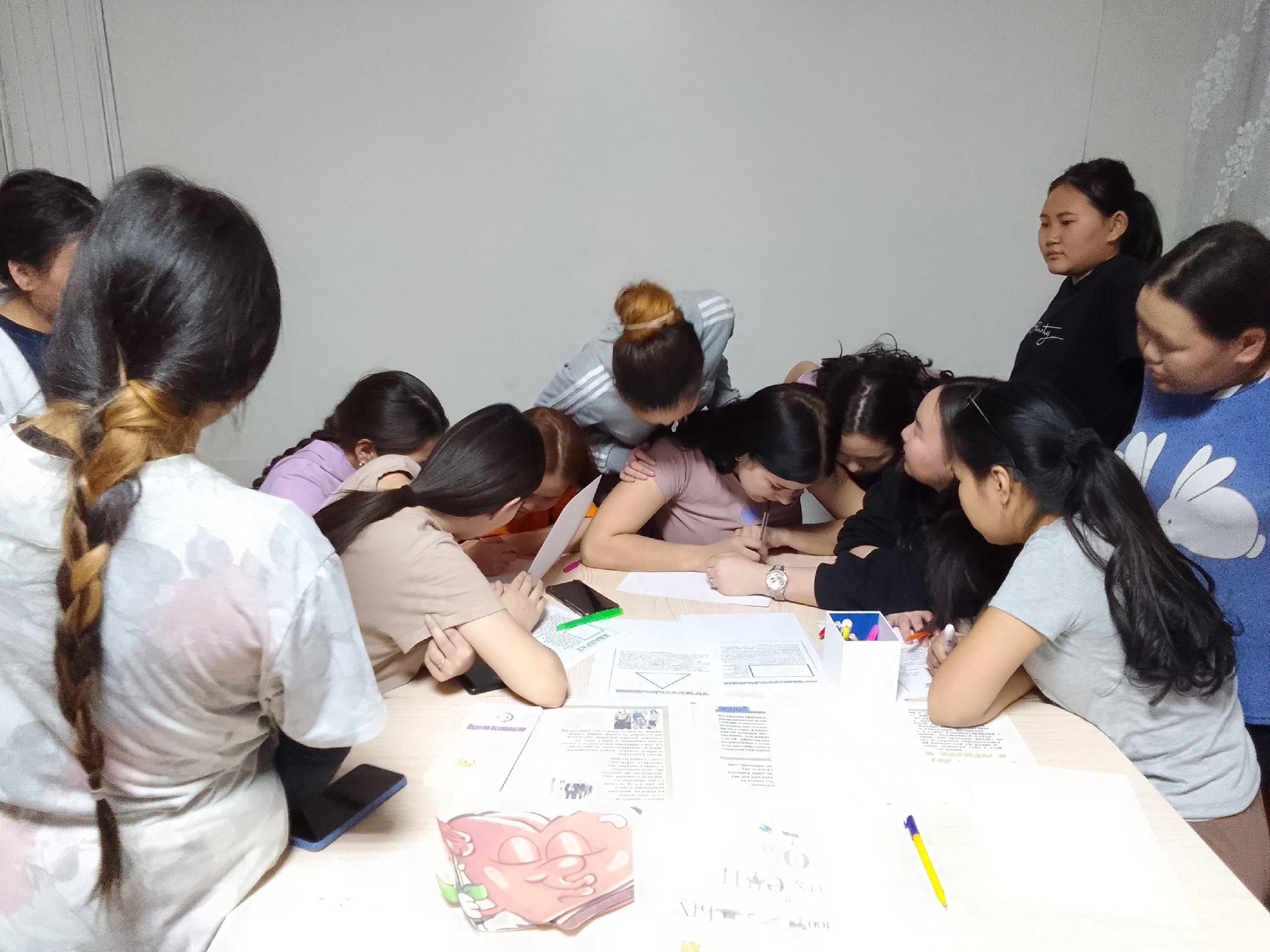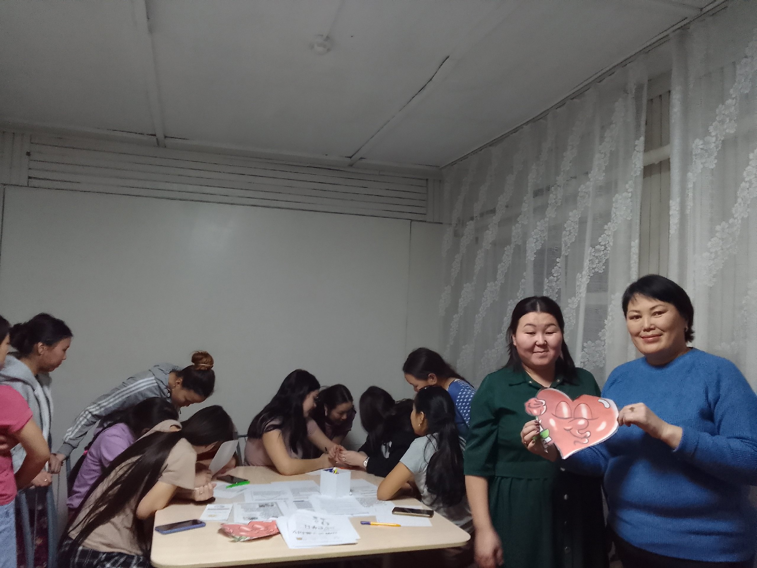 20 ноября в ТТА общежитии для девушек проводилось мероприятие педагогом-психологом Аяной Семеновной в формате командного решения логических задач. Девушки поделились на 2 команды. Каждая команда решали задачи на общую эрудицию. Мероприятие прошло живо с азартом. Студентки активно выполнили все предложенные им задания с большим интересом и энтузиазмом. Победила дружба. 🤗Также рассмотрели характер каждой студентки по выбранной геометрической фигуре, цвету и стилю одежды.💕