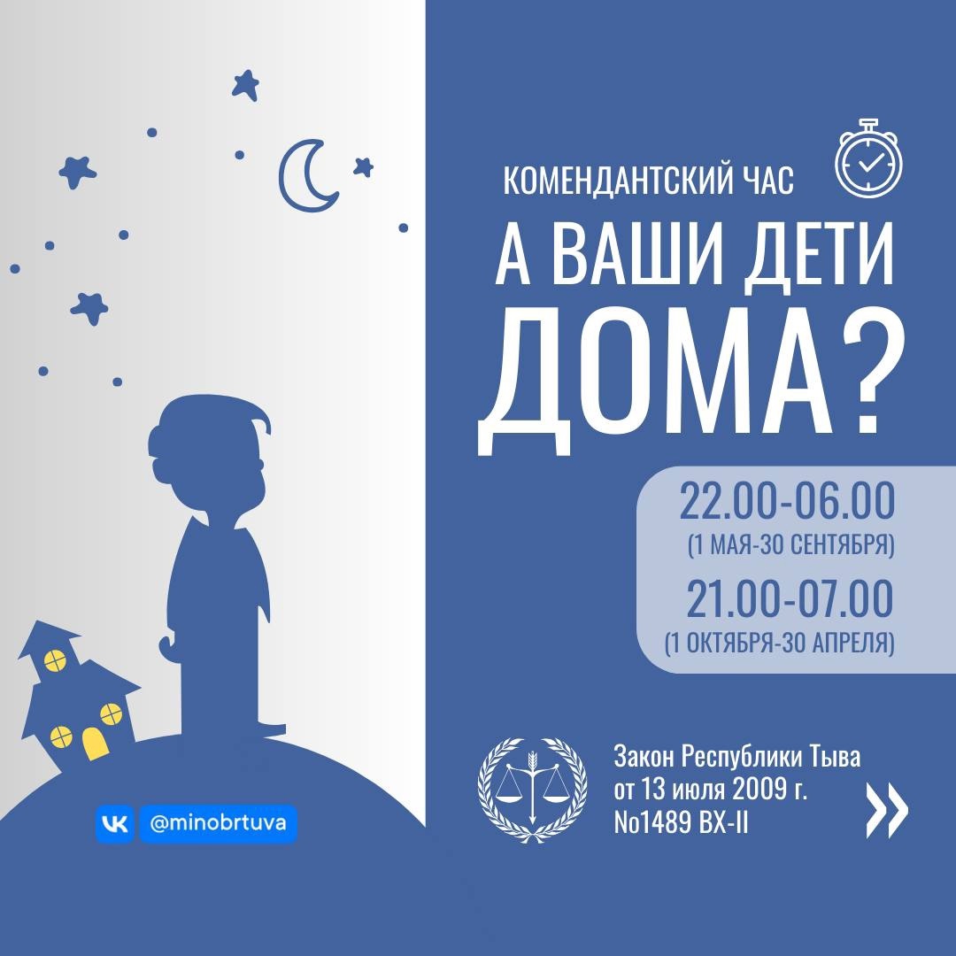 С 1 мая и до 30 сентября, согласно закону, в Республике Тыва изменяется время комендантского часа на летний период — с 22:00 вечера до 06:00 утра.