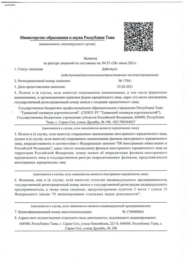 ГБПОУ РТ "Тувинский техникум агротехнологий"