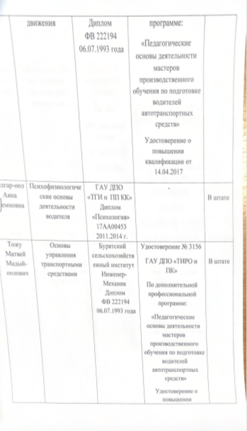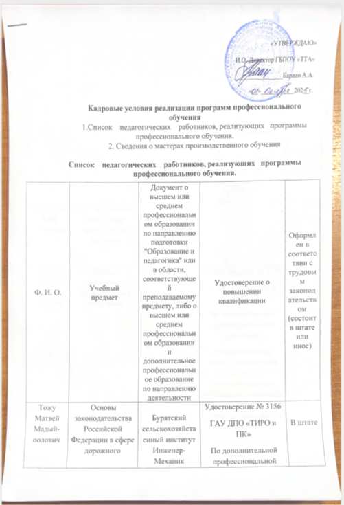 Кадровые условия реализации программ профессионального обучения